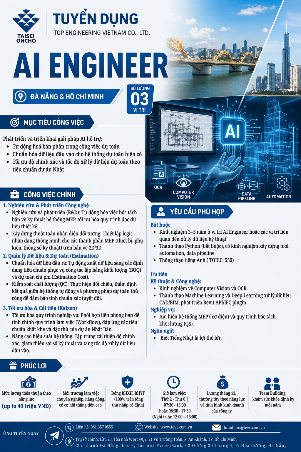 [Đà Nẵng & Hồ Chí Minh] Công ty TNHH Top Engineering Việt Nam tuyển dụng AI Engineer